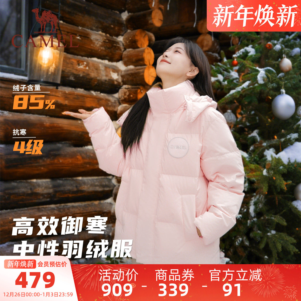 骆驼女装短款羽绒服女冬季小个子连帽保暖加厚面包服连帽羽绒外套