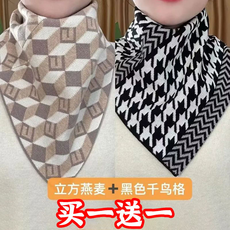 三角围巾围脖护颈假领套头脖套保暖男女三角巾秋冬千鸟格黑色白色
