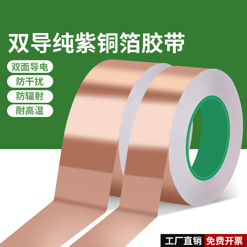 双面导电铜箔胶带防静电地坪地板消除静电电磁屏蔽耐高温散热胶带