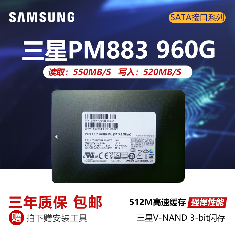 三星PM883 240G 480G 960G 1.92T 3.84T企业级SATA固态硬盘PM893