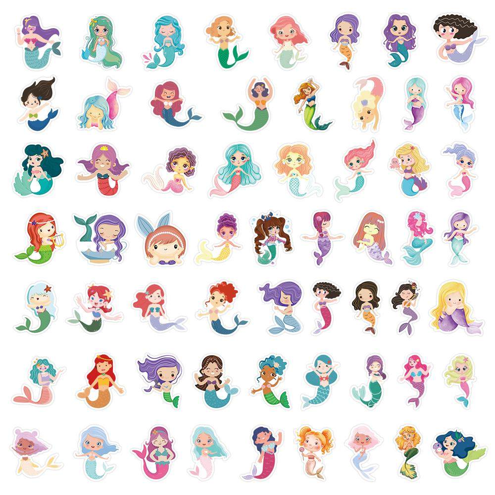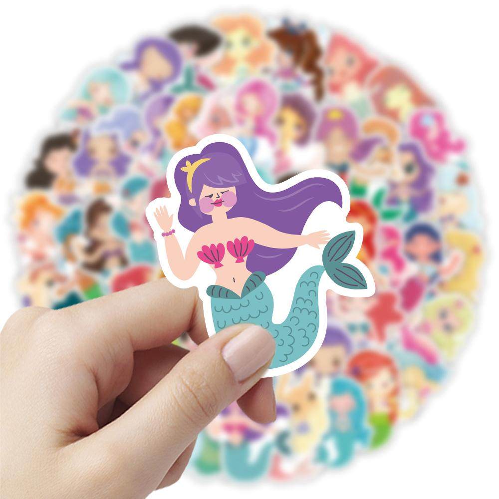 120张可爱美人鱼贴纸自行车水杯头盔手机壳装饰儿童卡通防水贴画