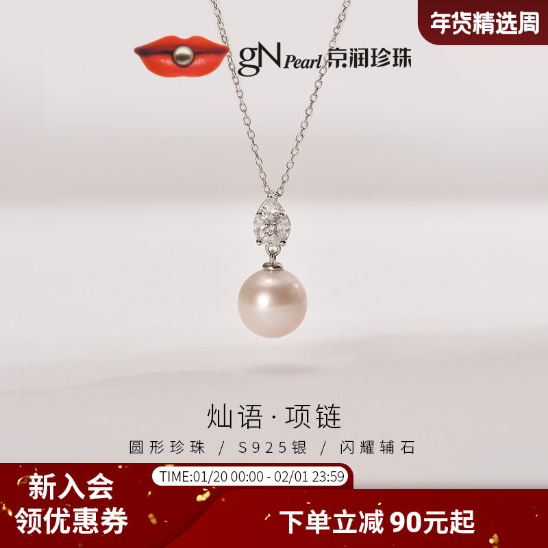 【品牌推荐】京润 小铃鹿淡水珍珠项链S925纯银珍珠吊链8-9mm女P