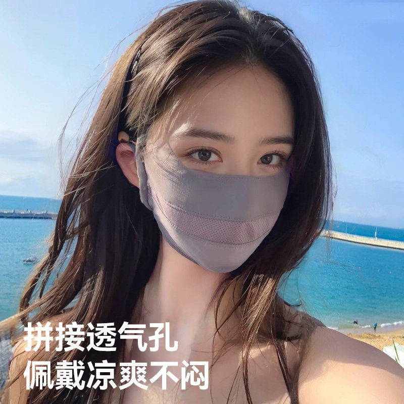 防晒口罩女透气薄款高颜值防紫外线护眼角全脸夏天冰丝遮阳面罩
