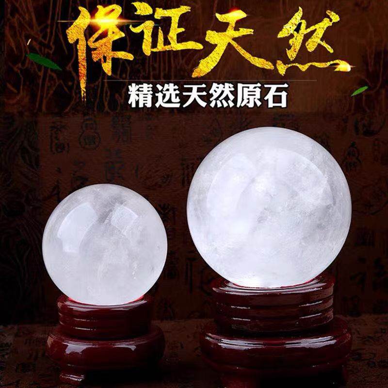 天然原矿水晶球摆件真原石白色乔迁搬家办公室客厅玄关高端工艺品