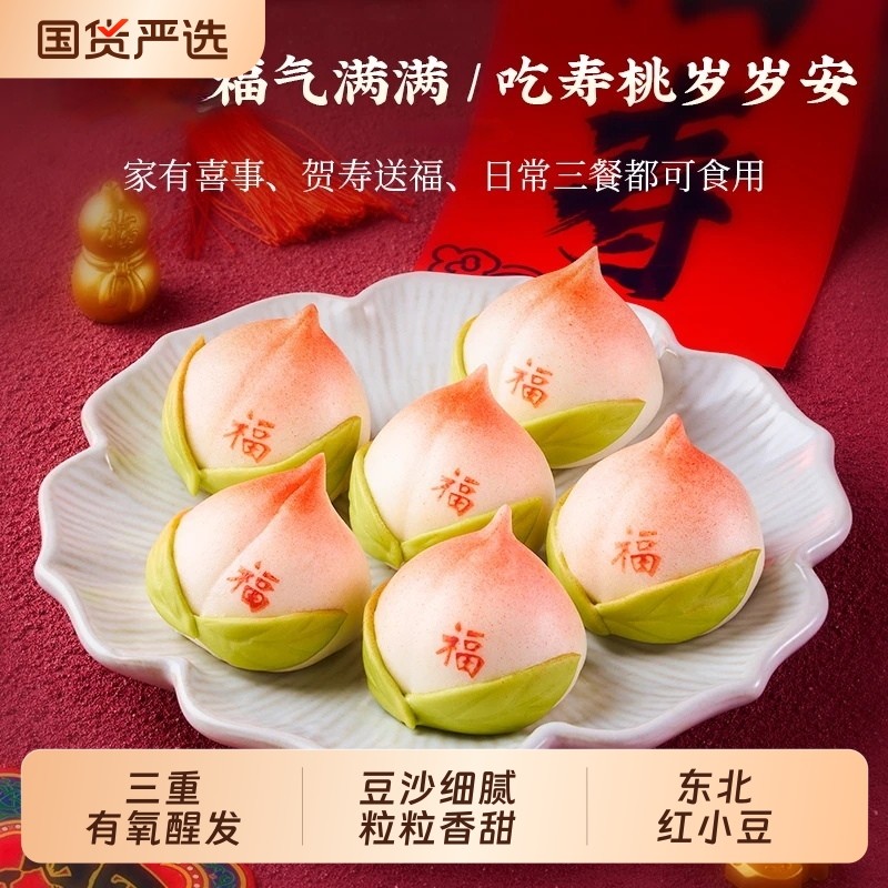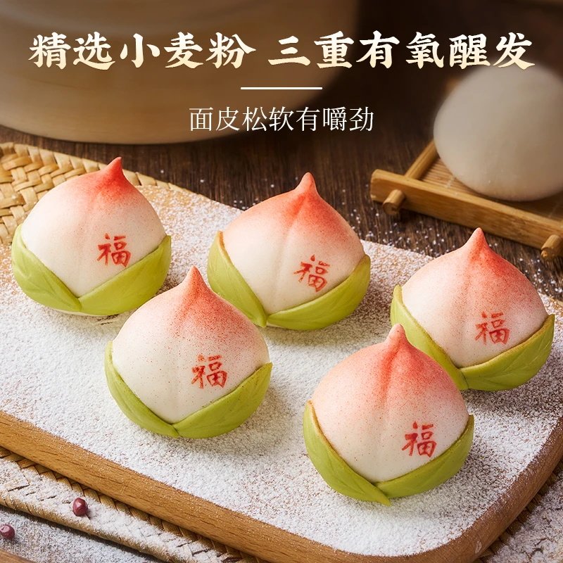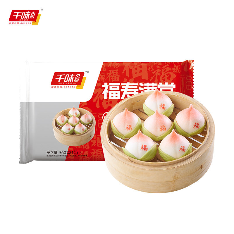 千味央厨福寿满堂寿桃包祝寿生日宴豆沙馅半成品卡通包点冷冻早餐
