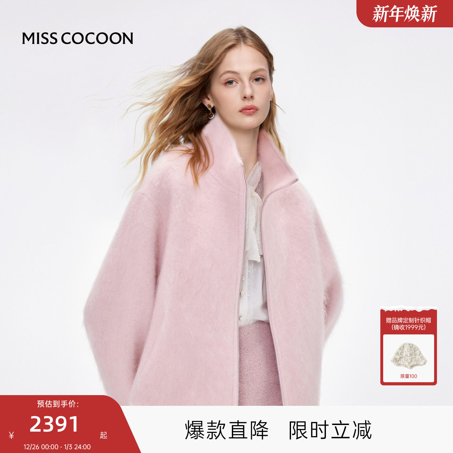 MISSCOCOON可可尼山羊绒上衣女2025冬季新款立领绵羊毛毛呢外套