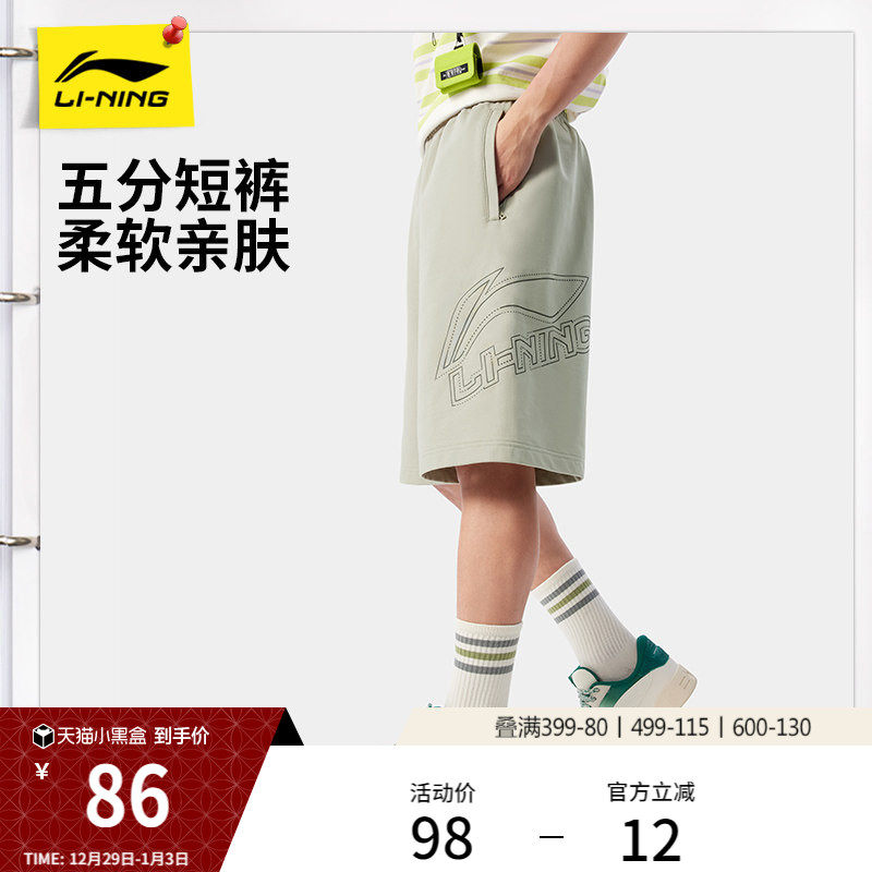 李宁短裤男士夏季新款宽松休闲运动短裤透气五分裤针织印花运动裤