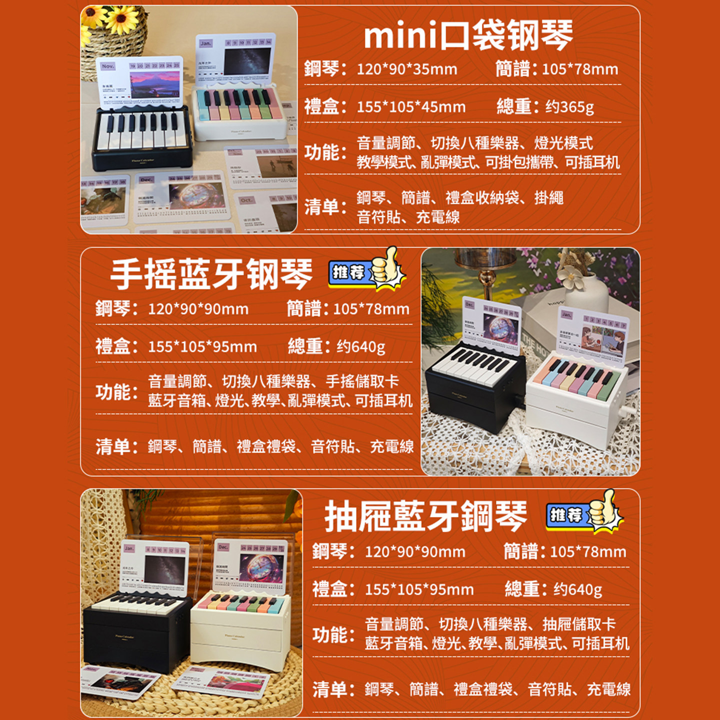 2026年新款邓紫棋可弹奏的钢琴台历电子琴蓝牙灯光教学送人礼物
