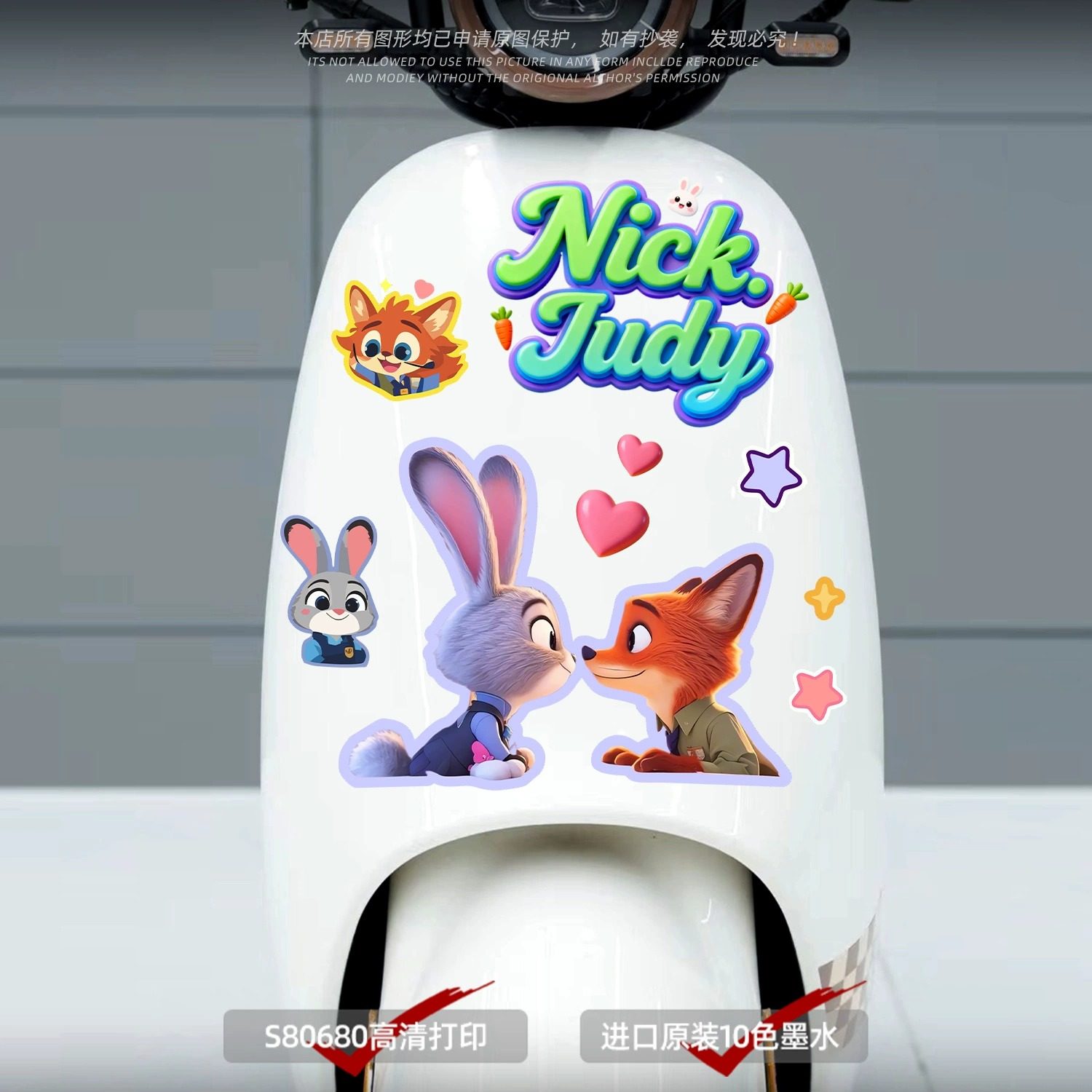 卡通动漫狐狸和兔子贴纸电动车装饰贴划痕遮挡贴纸可爱风格车身贴