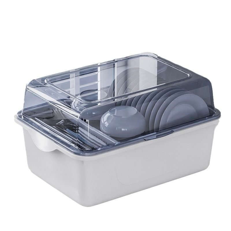 碗筷收纳盒带盖放餐具装盘子的置物架家用厨房沥水碗柜塑料储物箱