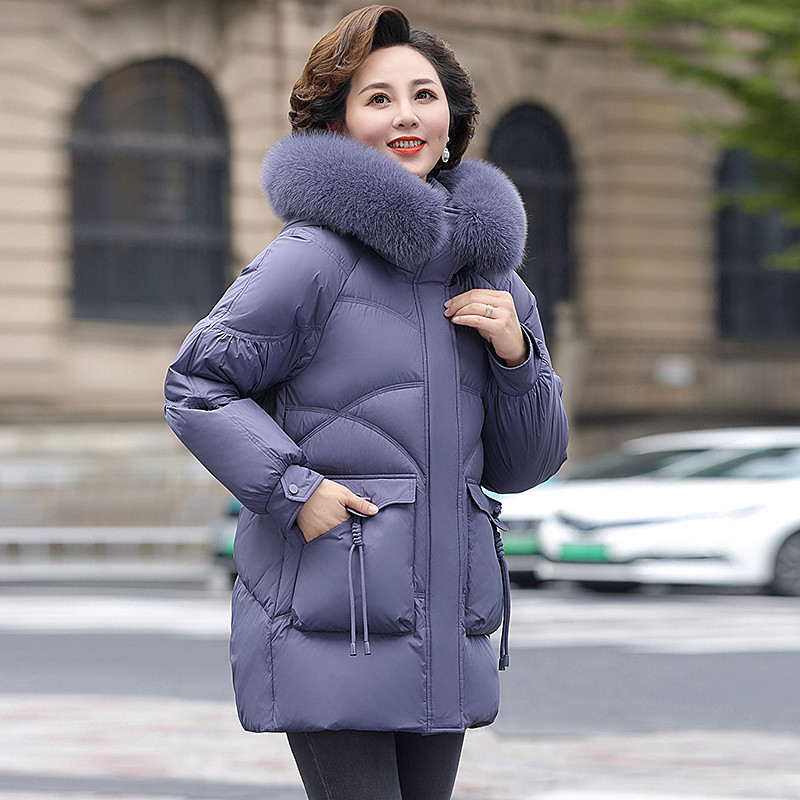 雪中飞2025冬新款女士妈妈款中长羽绒服狐狸毛领保暖绳结洋气