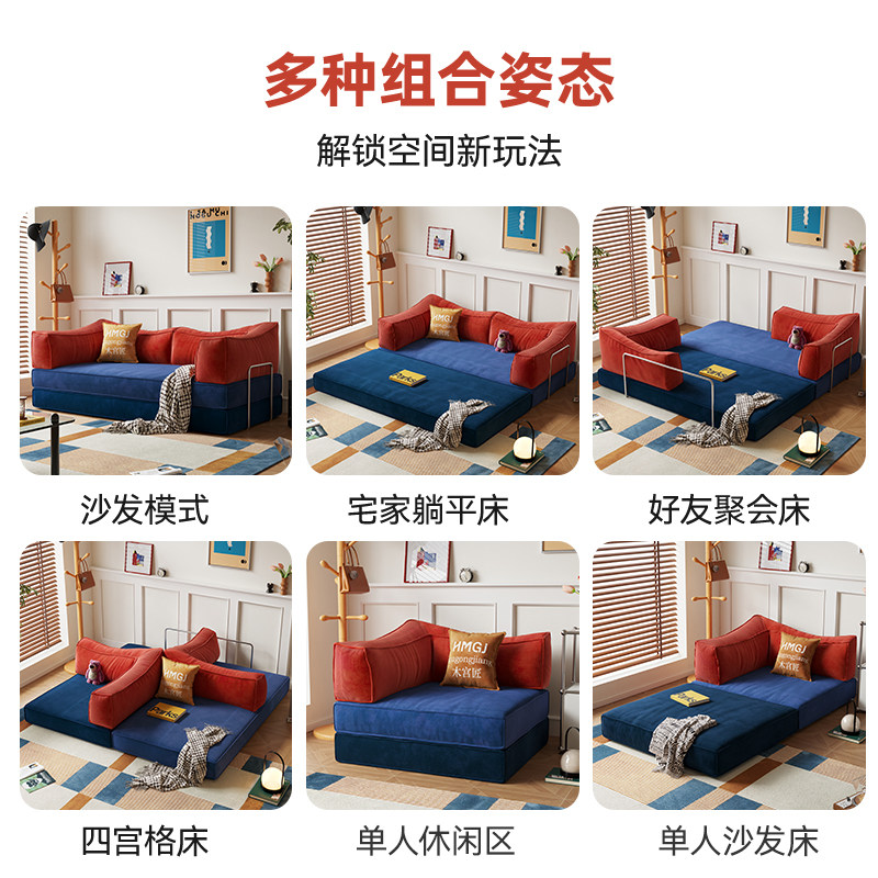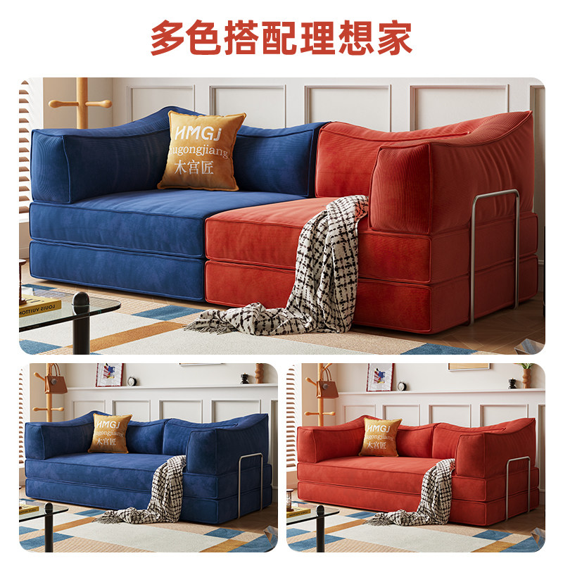 木宫匠布丁沙发床拼色可折叠一体两用新款小户型可变床多功能沙发