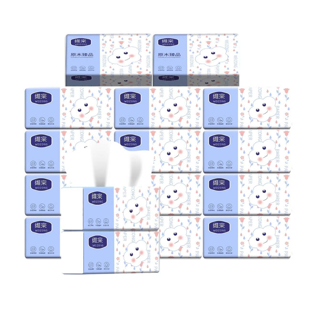 维宗蓝白抽纸5层加厚柔软亲肤餐巾纸整箱批发母婴适用实惠装大包