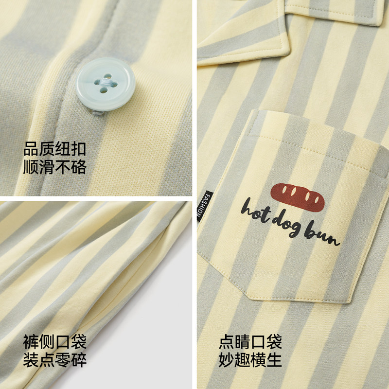 安比斯情侣睡衣舒适纯棉秋季女长袖男女同款休闲家居服套装可出门