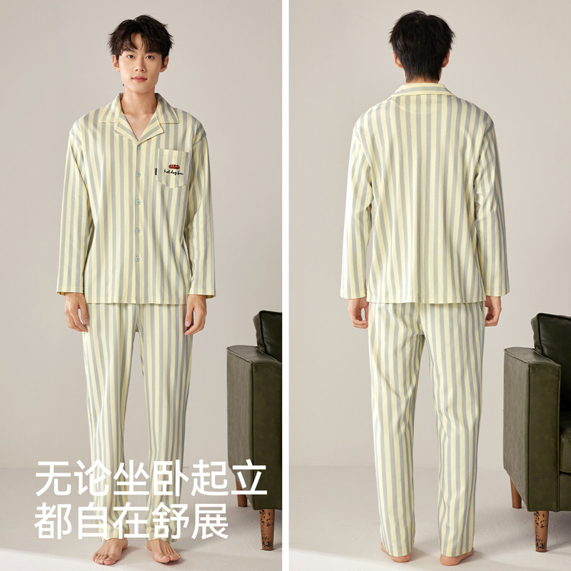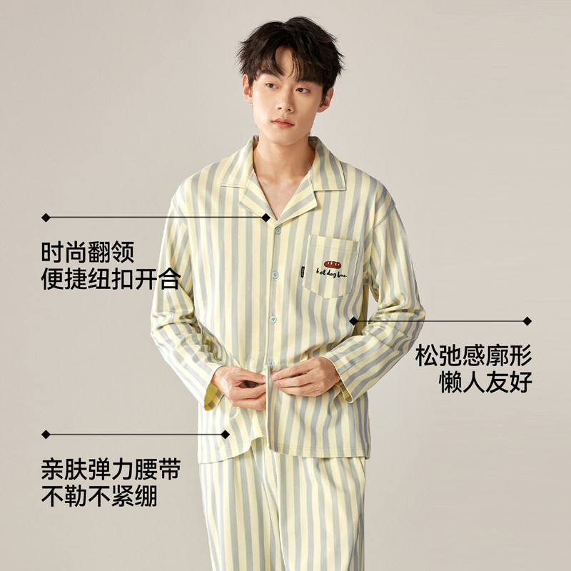森马男士家居服套装纯棉秋冬季2025新款时尚洋气条纹休闲男生睡衣
