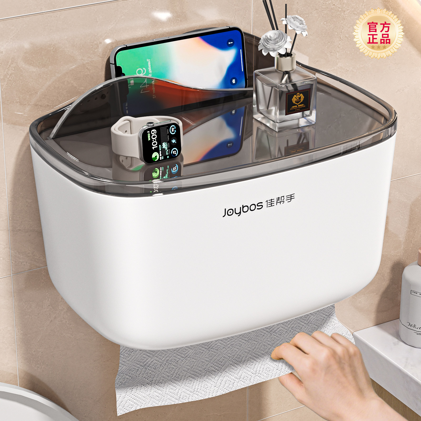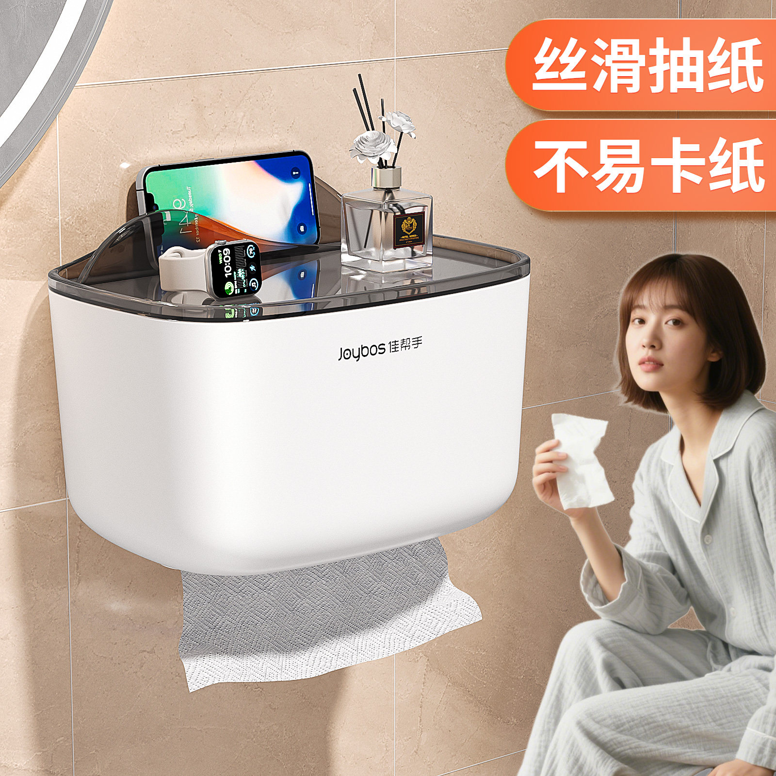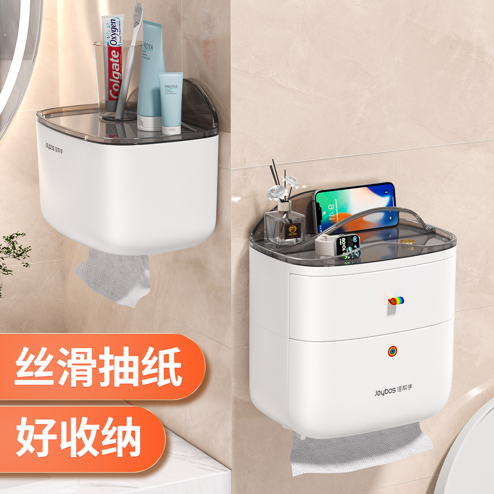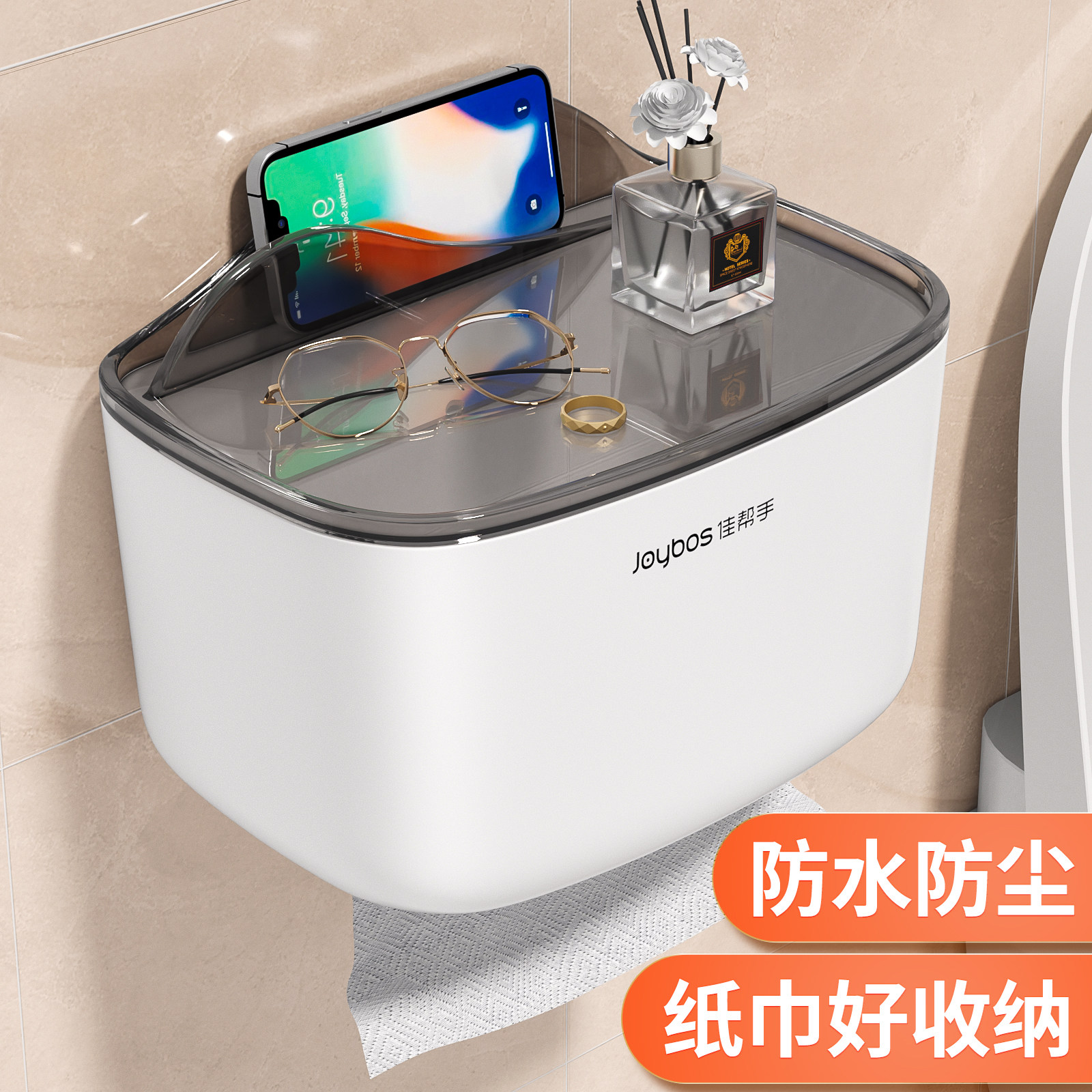 佳帮手卫生间纸巾盒免打孔壁挂防水厕所新款家用置物架厕纸盒收纳