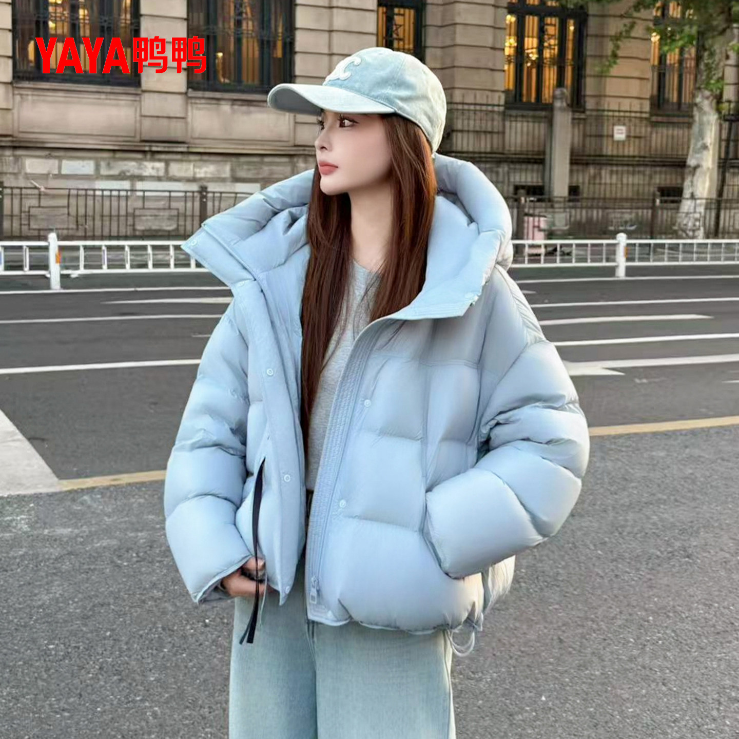 鸭鸭2025秋冬新款立领短款羽绒服小个子女冬多巴胺连帽可拆帽外套