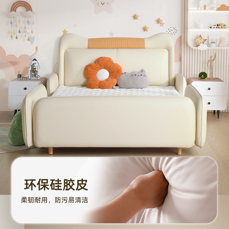慕思儿童床现代简约实木床环保硅胶皮公主床1.5m女孩房