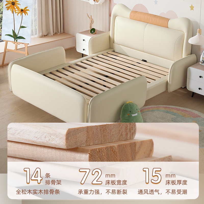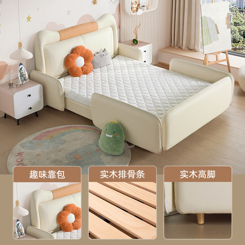 全榉木儿童床卧室男孩单人床小户型女孩公主床实木床带护栏软包床