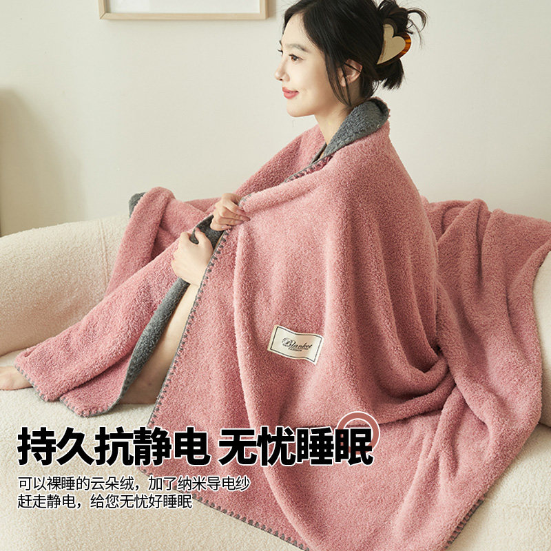A类牛奶绒毛毯冬季盖毯可机洗单人宿舍毯披肩午睡毯双面绒床单厚