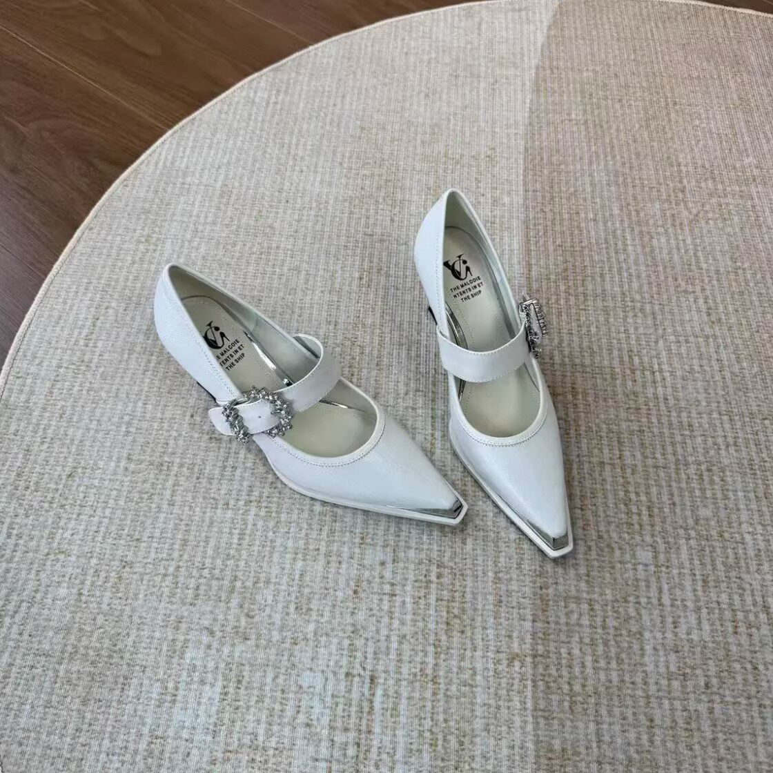 真皮~骄屿法式仙女风高跟鞋女婚鞋玛丽珍鞋珍珠系蝴蝶结粗跟单鞋
