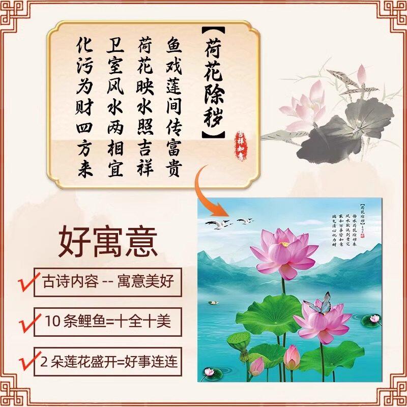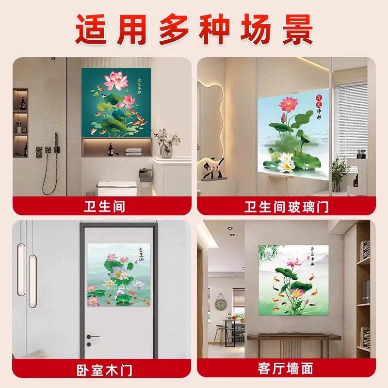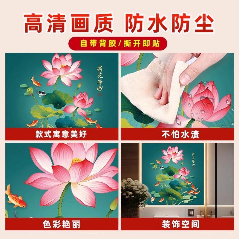 净秽荷花图卫生间防水自粘墙贴壁画厕所专用防尘贴画墙面瓷砖客厅