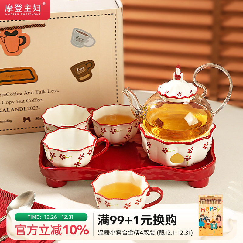 摩登主妇茶具套装新婚礼物结婚伴手礼茶杯泡茶壶2025新款玻璃水壶