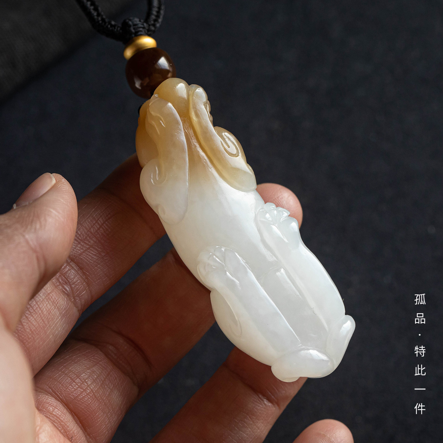【孤品-祥瑞】天然和田玉白玉黄玉貔貅吊坠新中式毛衣链 一物一证