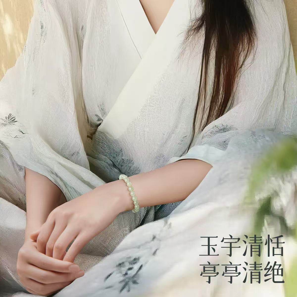 晴水玉手串女款冰种浅睛绿手链仿和田玉手饰玉石女友闺蜜礼物饰品