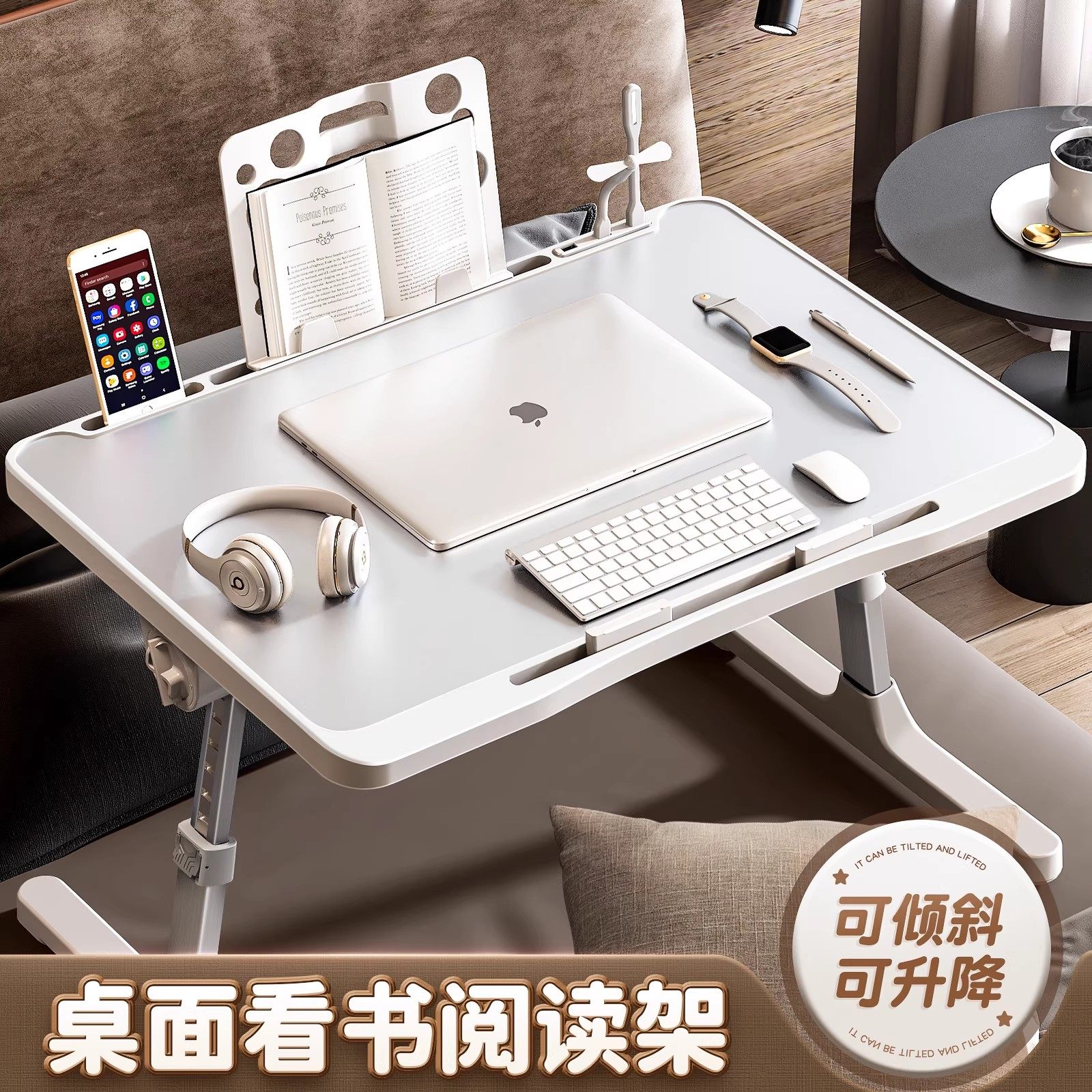 可升降折叠床上小桌子简约宿舍学生写字床上书桌学习调节高度支架家用卧室坐地飘窗懒人笔记本电脑办公小桌板