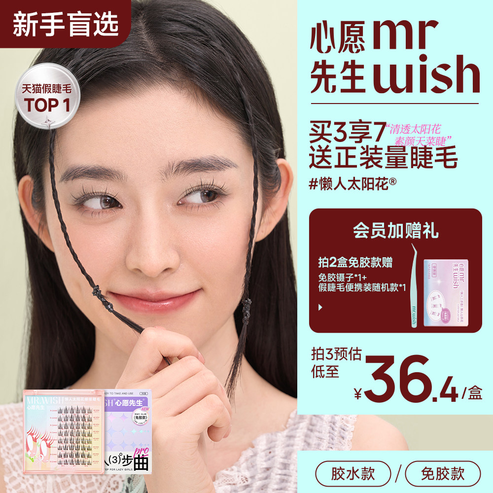 心愿先生免胶太阳花假睫毛分段式新手卷翘自然款免胶水自粘