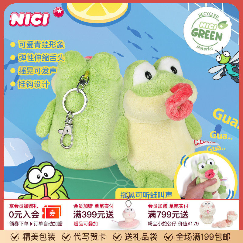 德国NICI顽皮青蛙小挂件玩具毛绒公仔摇晃可发声玩偶毛绒丑萌可爱