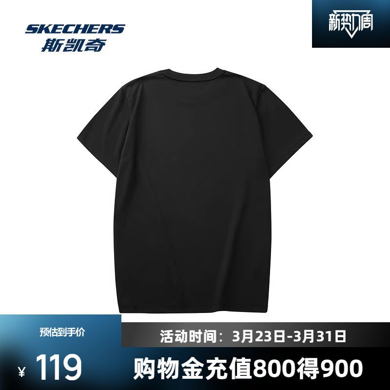 斯凯奇短袖T恤夏季新款运动修身透气上衣休闲情侣款圆领打底衫