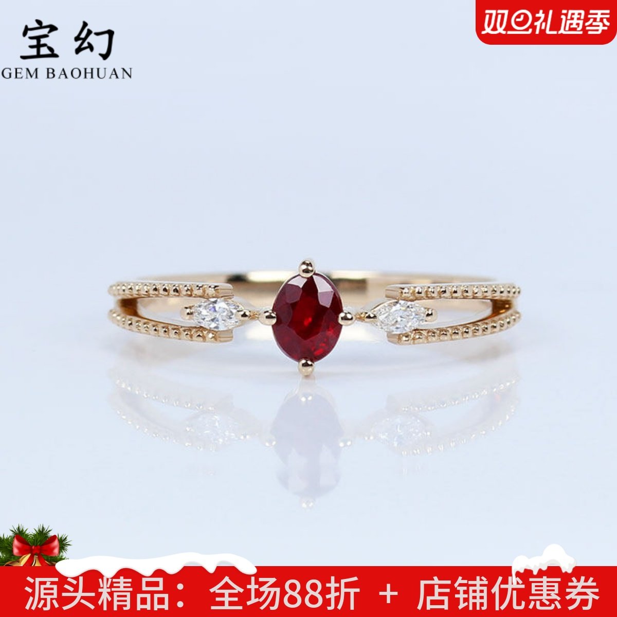 18K玫瑰金天然鸽血红宝石分叉戒指 彩金马眼钻石复古指环手饰女款