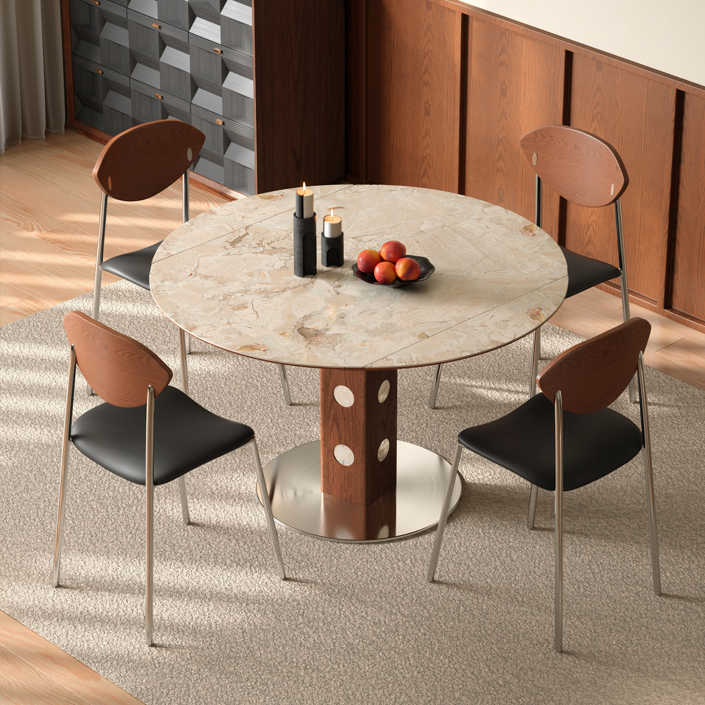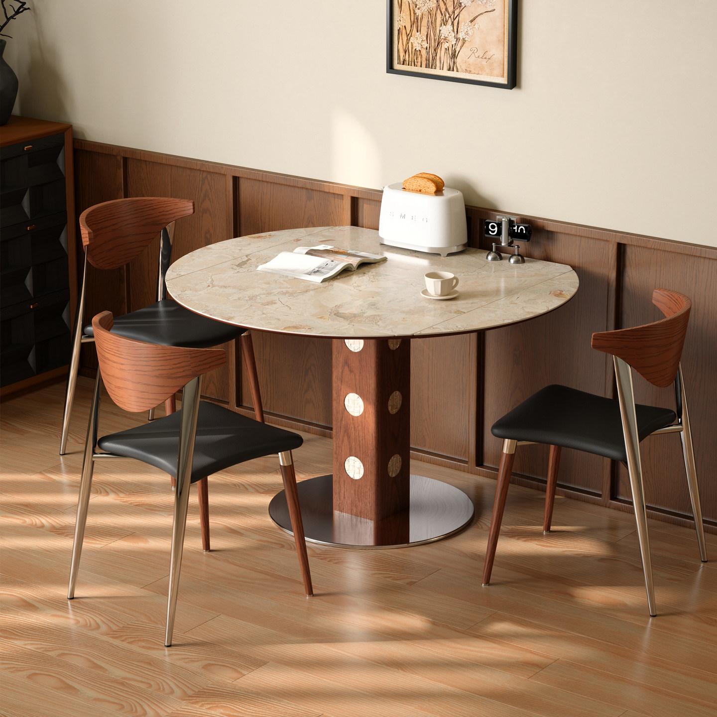 木小咖中古风实木饭桌小户型家用可变圆桌伯格伸缩折叠岩板餐桌椅