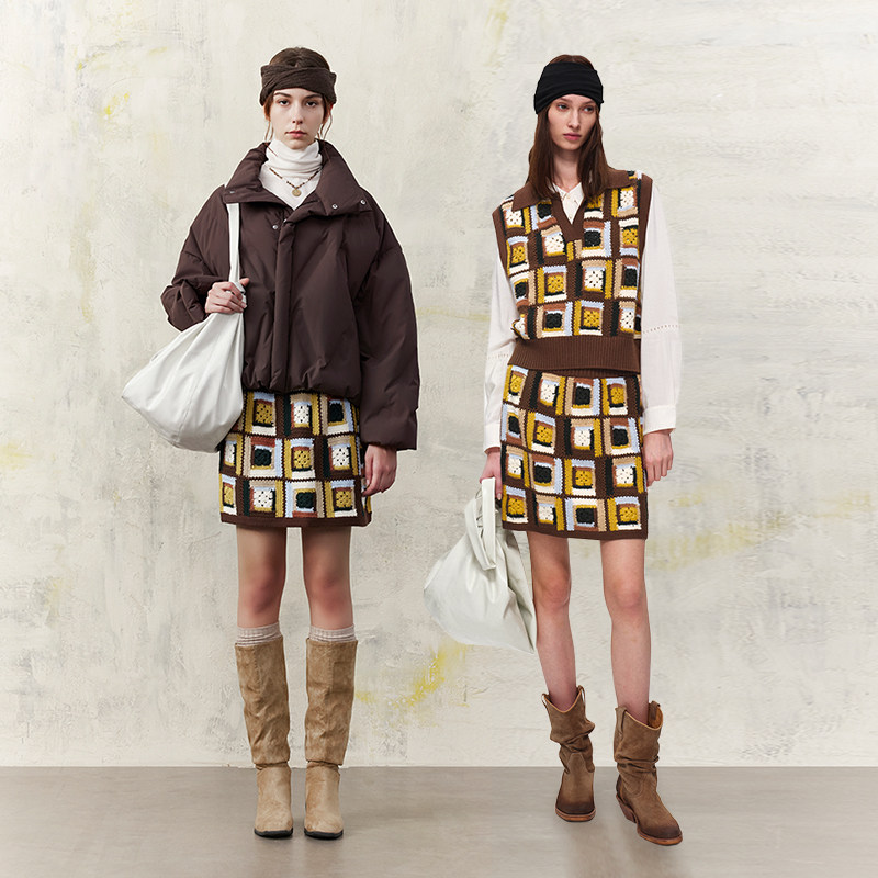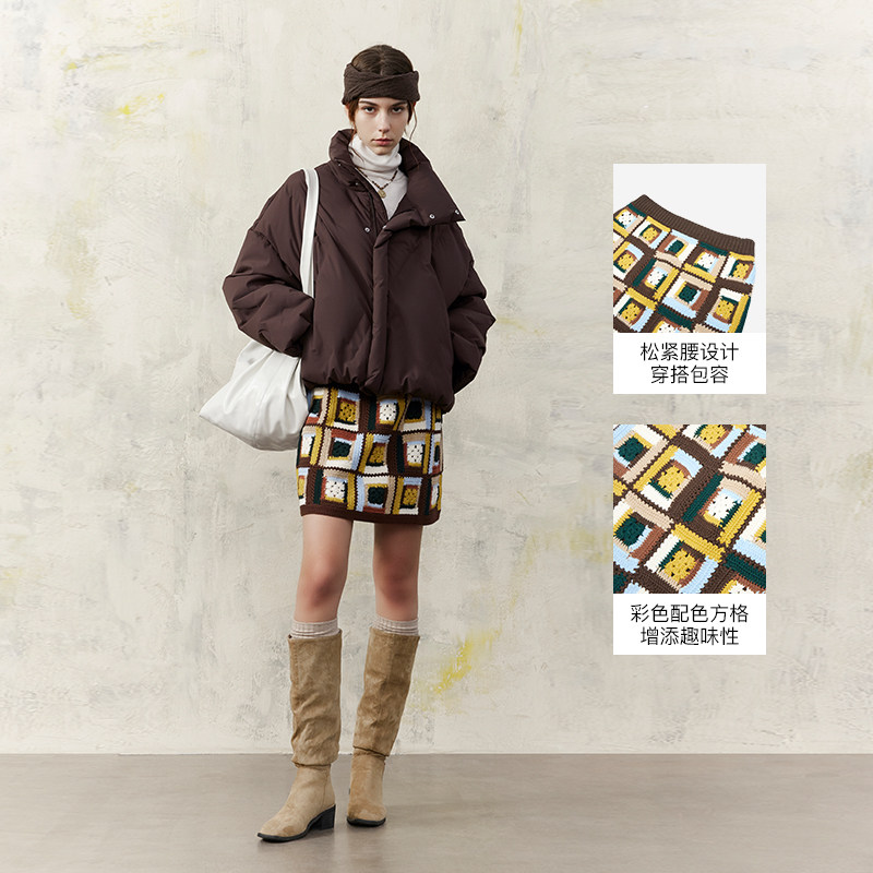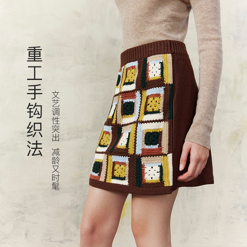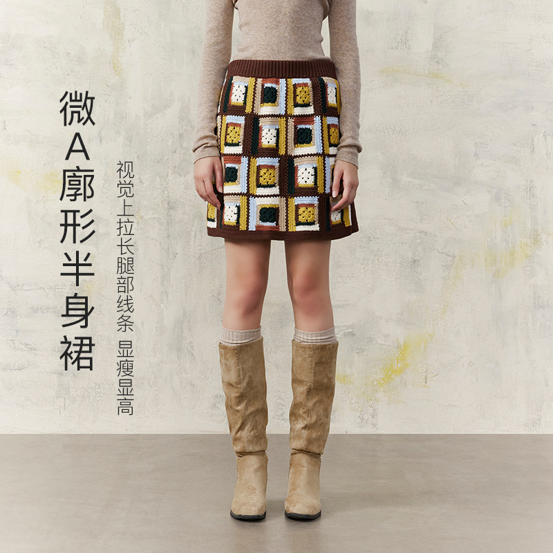 MSLAN商场同款秋冬美拉德彩格针织短裙半身裙女MGAQ290