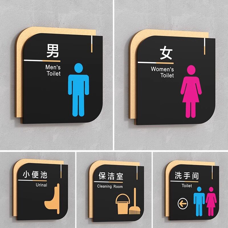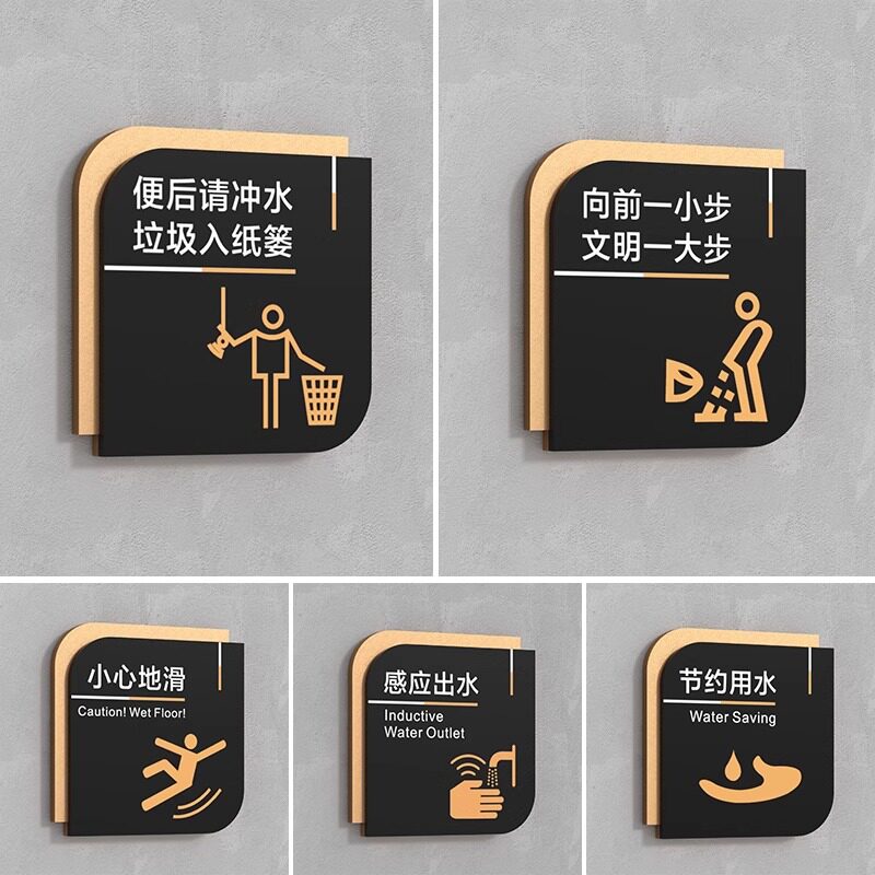 亚克力卫生间提示牌洗手间标识牌坐便蹲便标牌标示牌小便池厕所文明标语温馨提示牌保洁室小心地滑警示牌定制