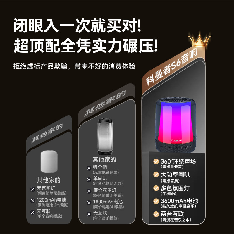 科曼者S6 无线蓝牙音箱高音质家用音响高续航重低音炮