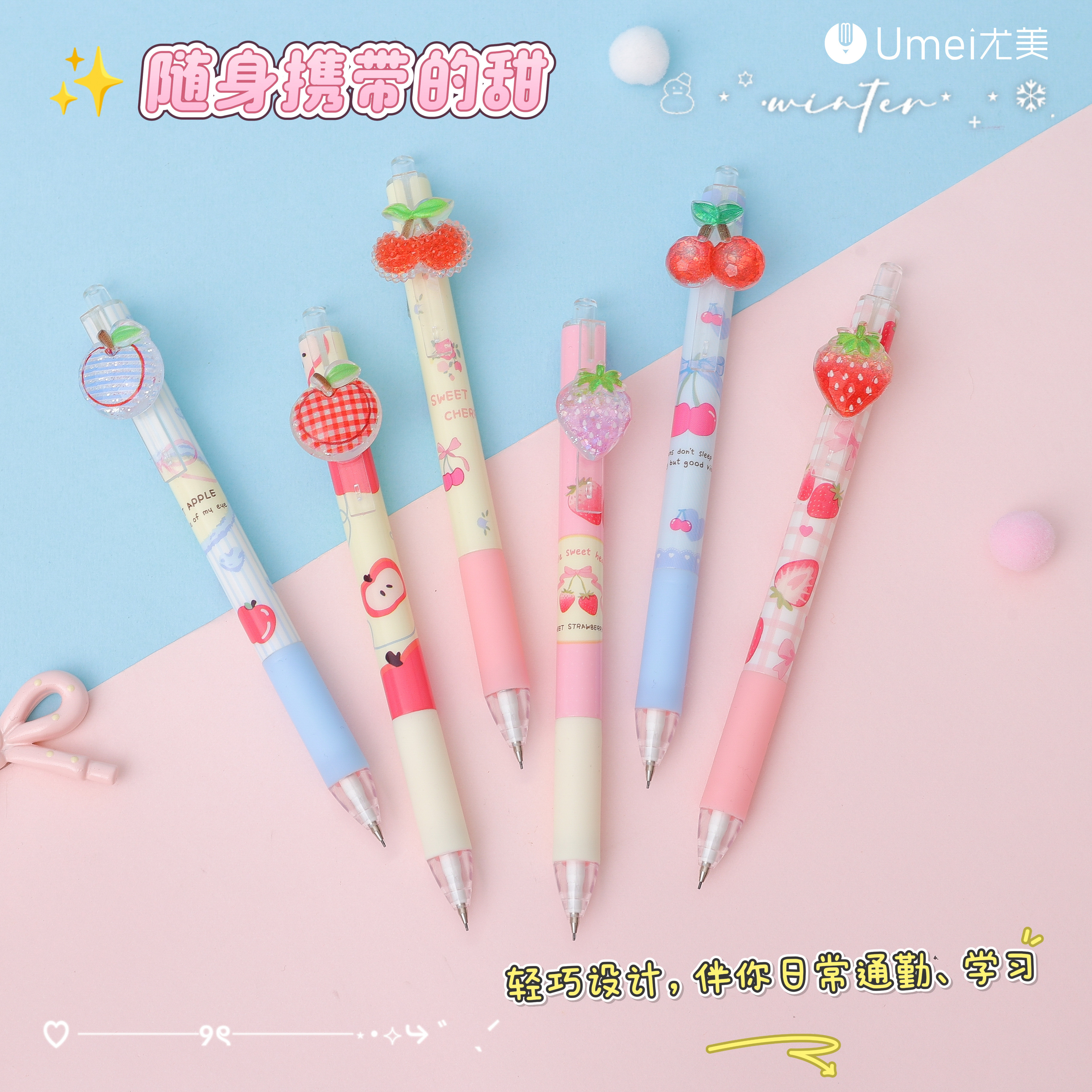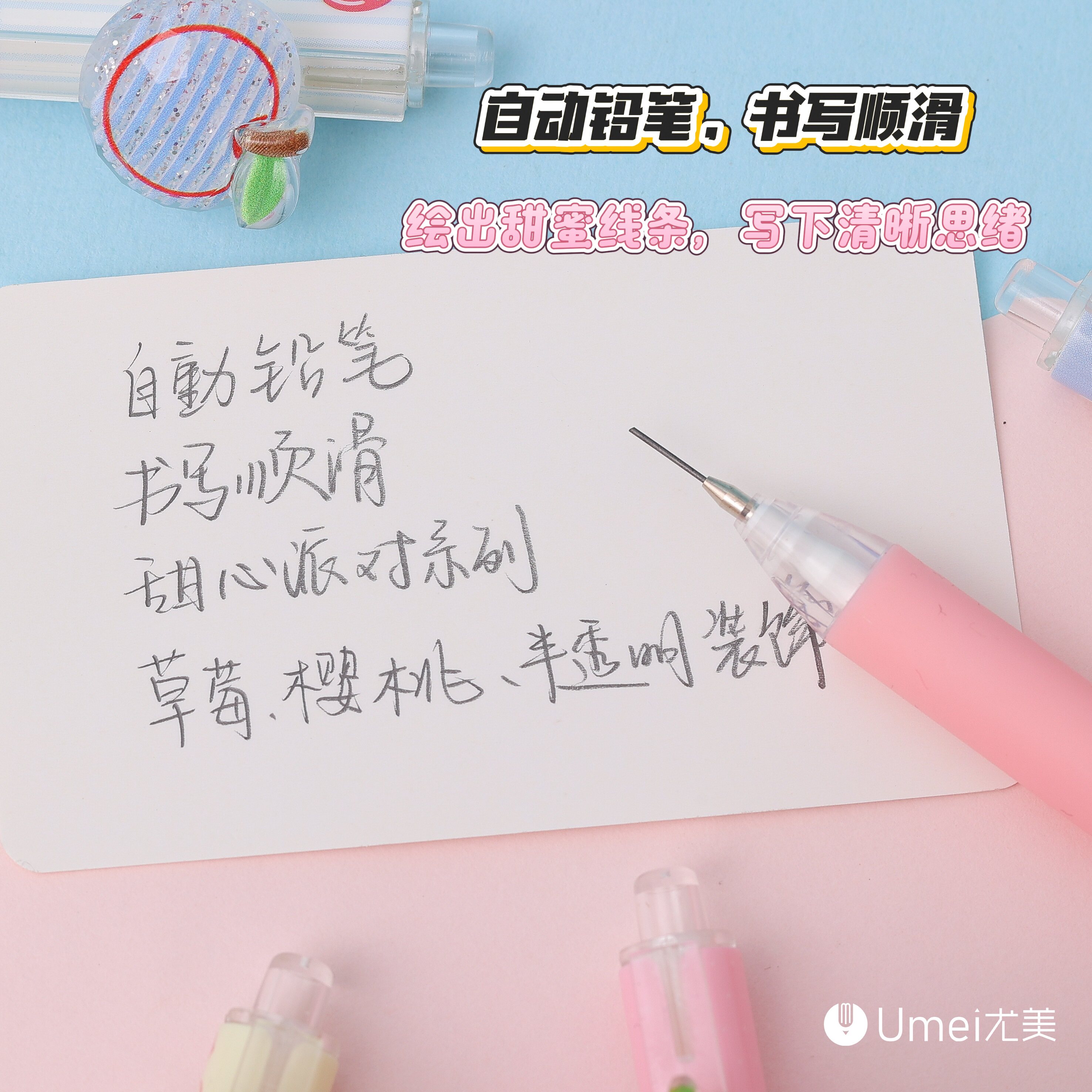 水果草莓樱桃自动铅笔卡通可爱ins高颜值少女心趣味小清新创意贴片活动铅笔小学生专用免削铅笔0.5闺蜜礼物