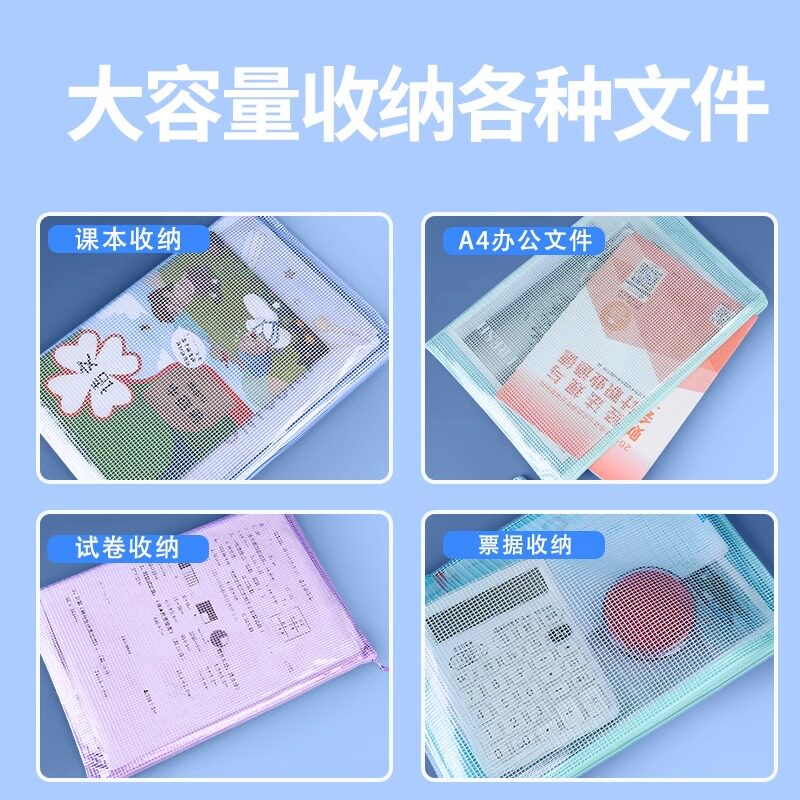 网格文件袋加厚透明网格拉链袋A4试卷收纳袋学生用考试文具袋防水笔袋办公用品批发公文档案袋资料袋包邮