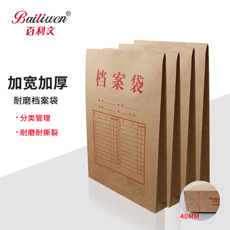 百利文加厚牛皮纸档案袋大容量文件袋合同资料袋a4纸袋团员高考考生人事学生学籍档案袋定做定制印刷logo