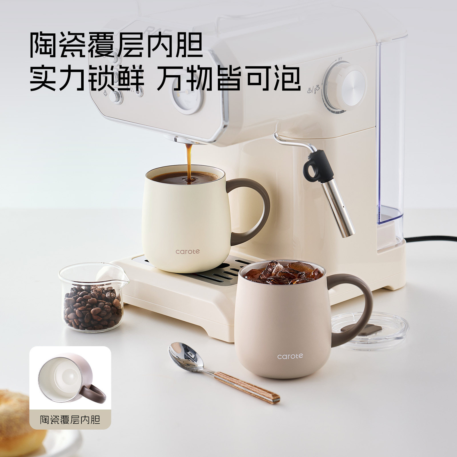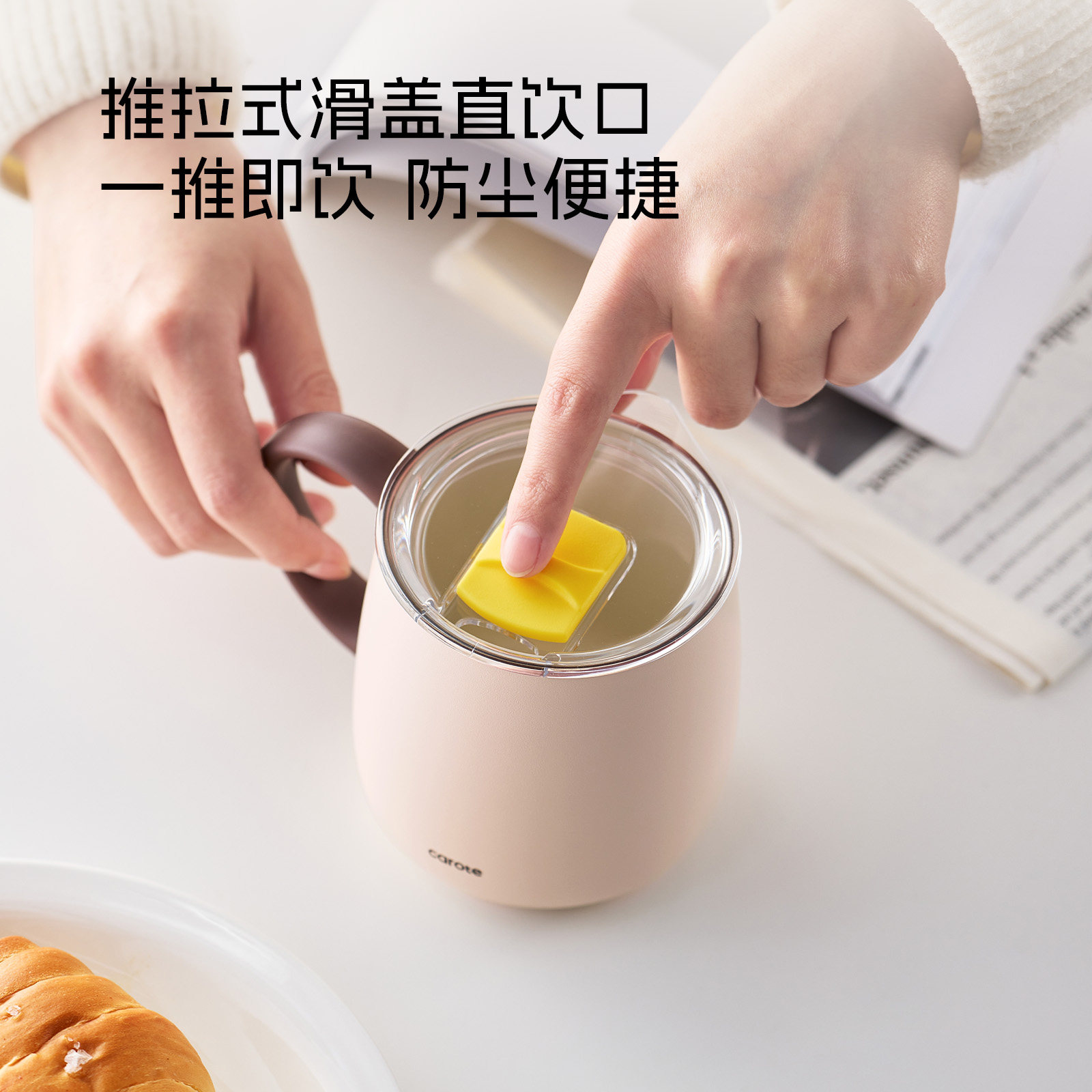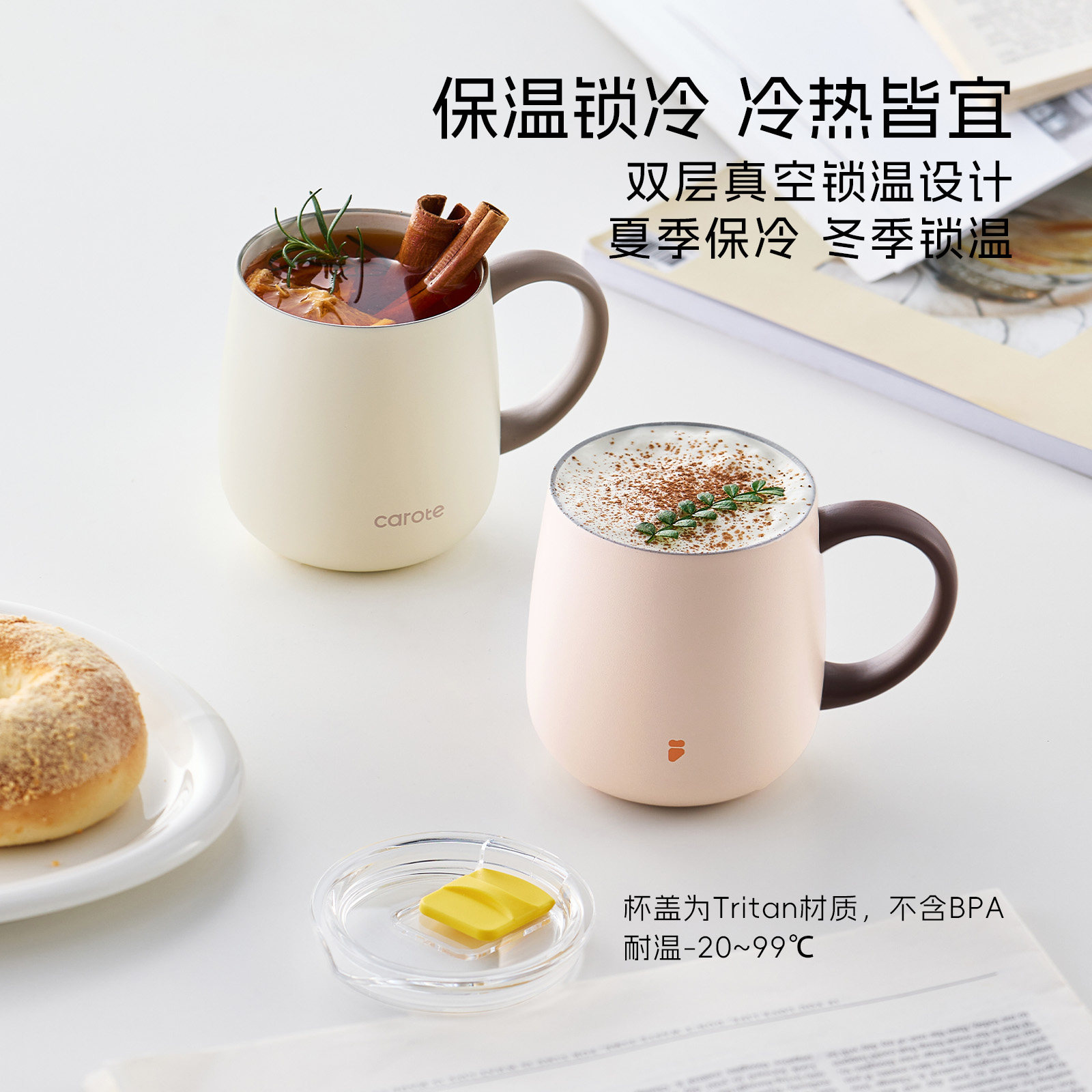 卡罗特不锈钢马克杯带盖水杯女家用办公室保温咖啡杯桌面泡茶杯子