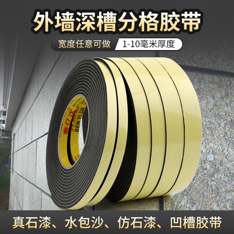 外墙施工深凹槽分格胶带单面EVA泡棉胶带泡沫胶装修仿真石漆水包砂喷砂防撞防震海绵胶条批发
