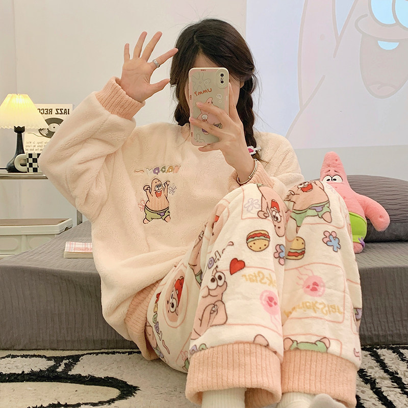 2025新款珊瑚绒睡衣女款秋冬季法兰绒加绒加厚女士大码家居服套装