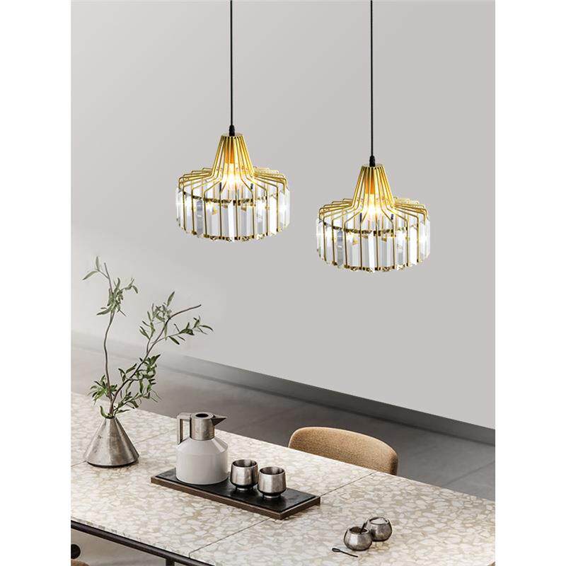 餐厅吊灯卧室床头灯简约轻奢灯笼草帽水晶灯创意日式吧台网红灯具
