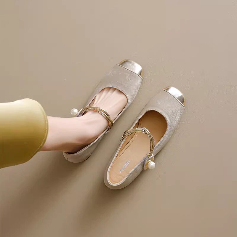 内增高法式裸色尖头单鞋女2025新款名媛千金平底浅口气质玛丽珍鞋