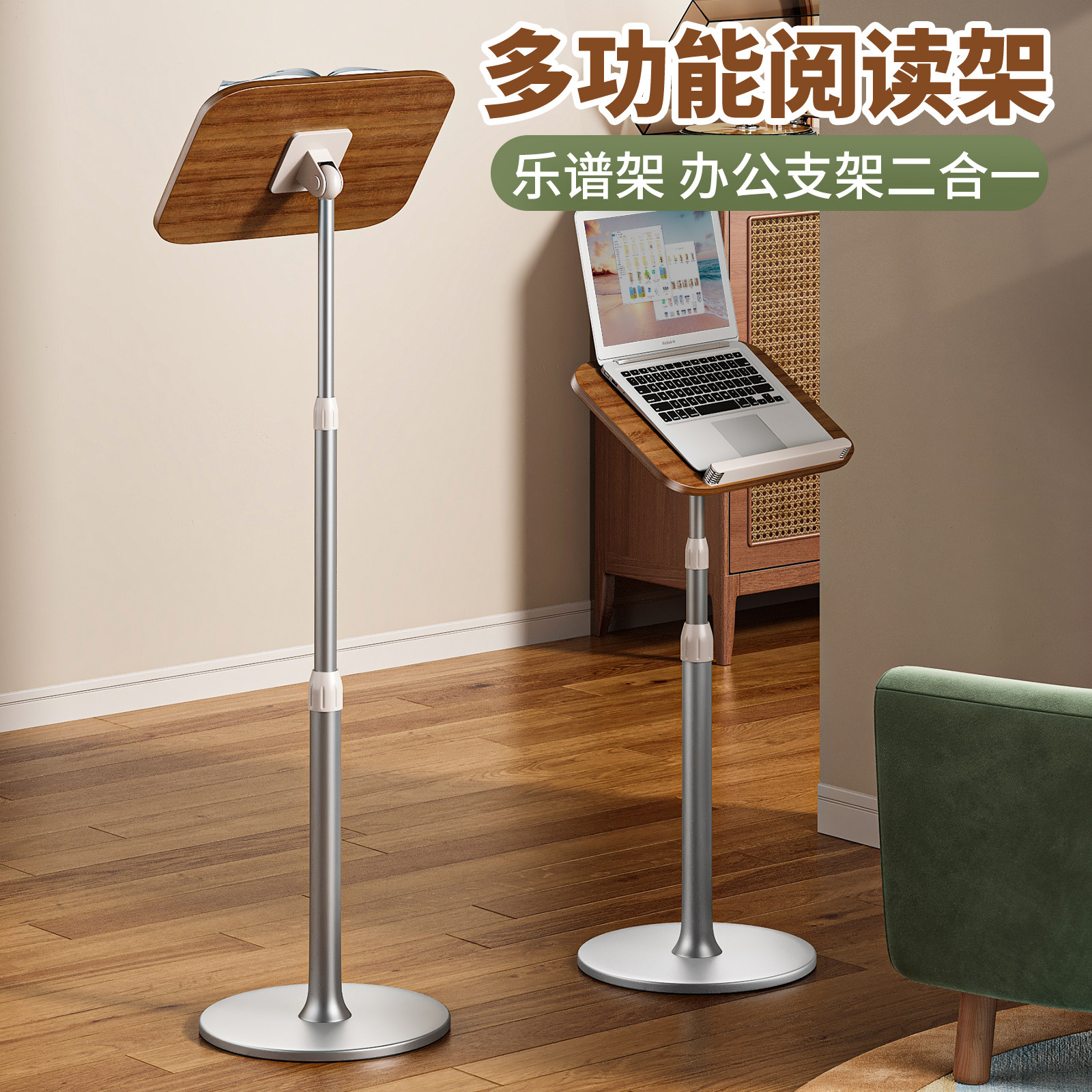 落地阅读支架可升降琴谱架乐谱架菜谱架看书架诵经架学生读书神器书夹书架书本支撑架可调节平板伸缩古筝站立