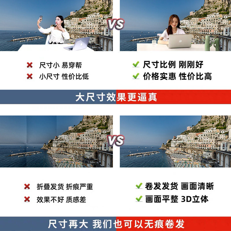 欧洲地中海风景区直播背景布3d立体背景墙海边大海室内网红主播背景布拍照道具大尺寸加厚壁纸画直播间场景布