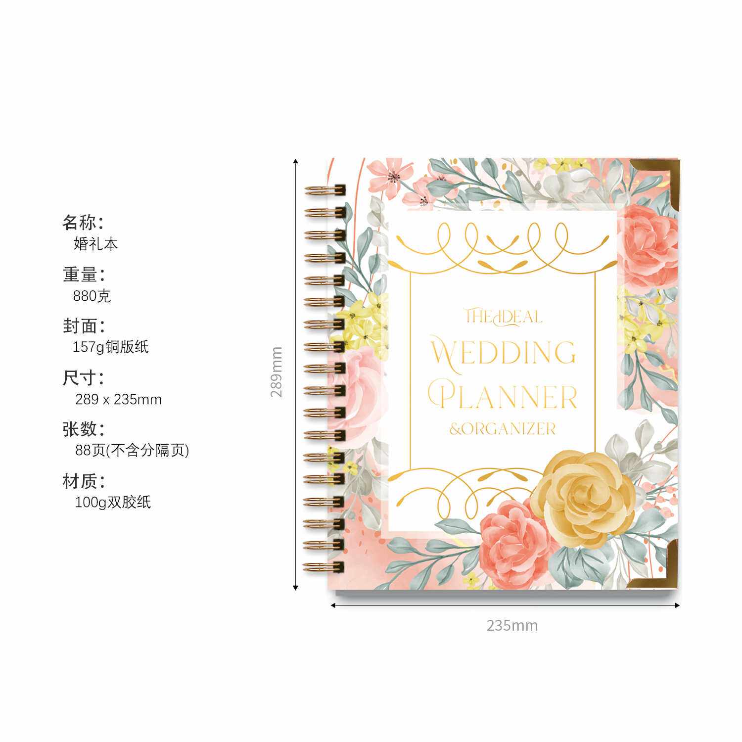 跨境英文版婚礼计划本小清新碎花硬面结婚策划本通用线圈本笔记本
