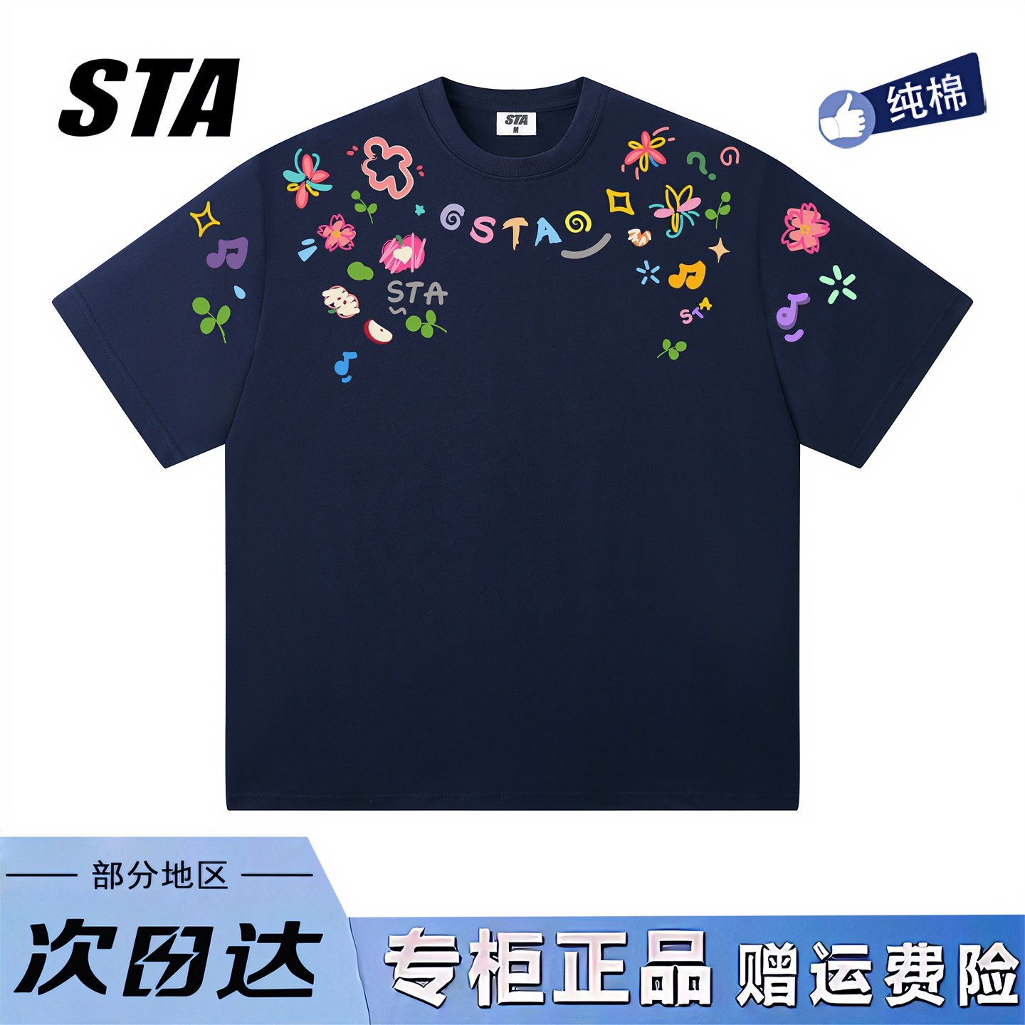 STA旗舰店美式潮牌手绘涂鸦印花短袖男女夏季重磅纯棉情侣宽松t恤
